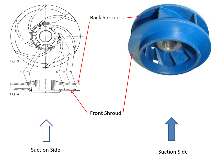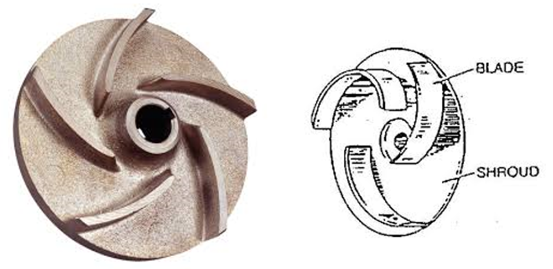 第一個,可以說是最堅固的設計是封閉式葉輪。在這種設計中,液體沿著由葉片形成的通道沿路徑向下流動,并通過兩個護罩在頂部和底部(或根據(jù)軸方向的前后)“封閉”。下面的兩張圖片說明了這種設計。