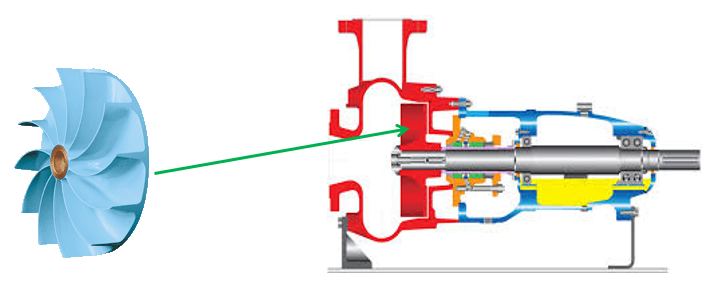下圖很好地展示了葉輪,旁邊的剖面圖說明了泵內(nèi)的葉輪位置